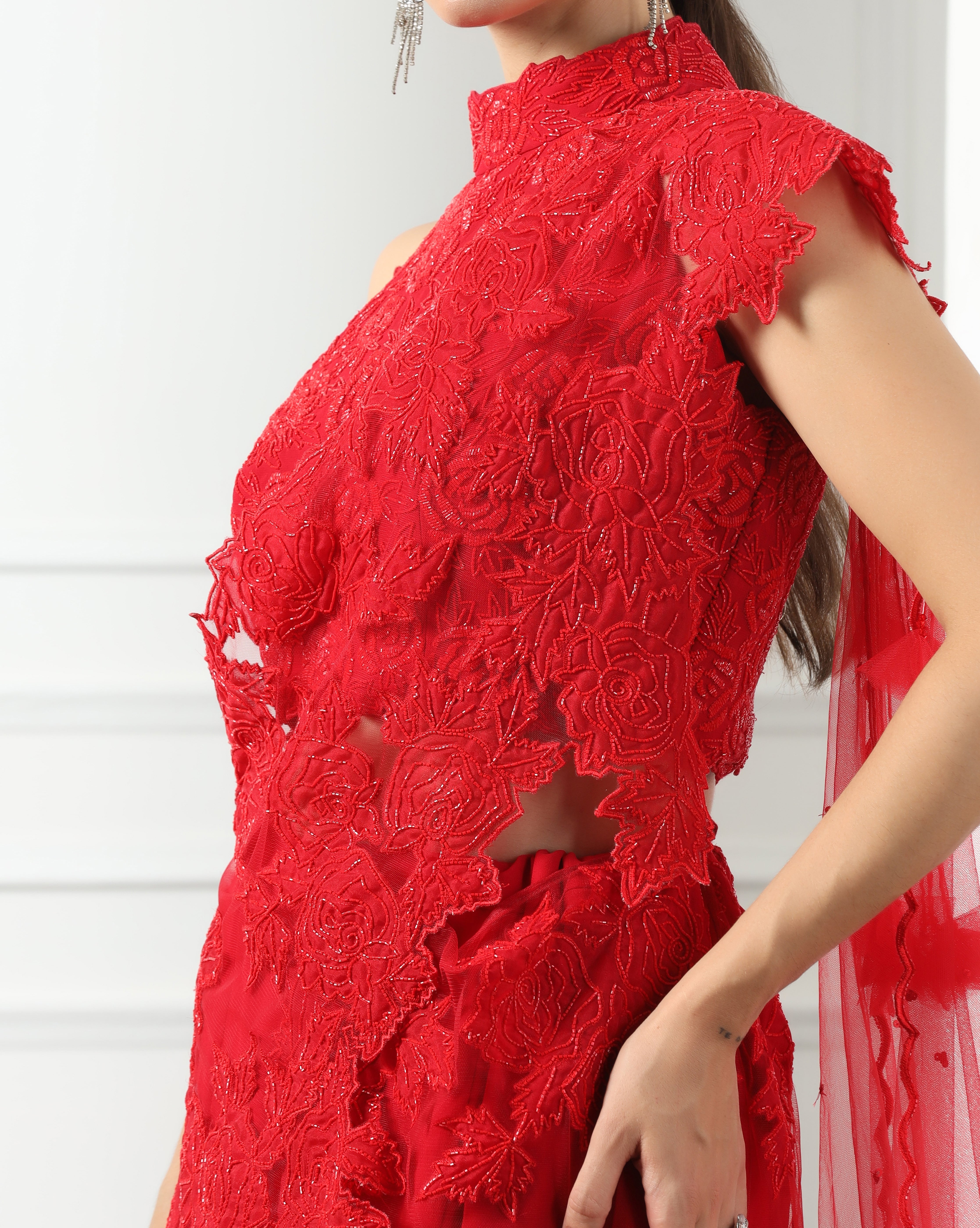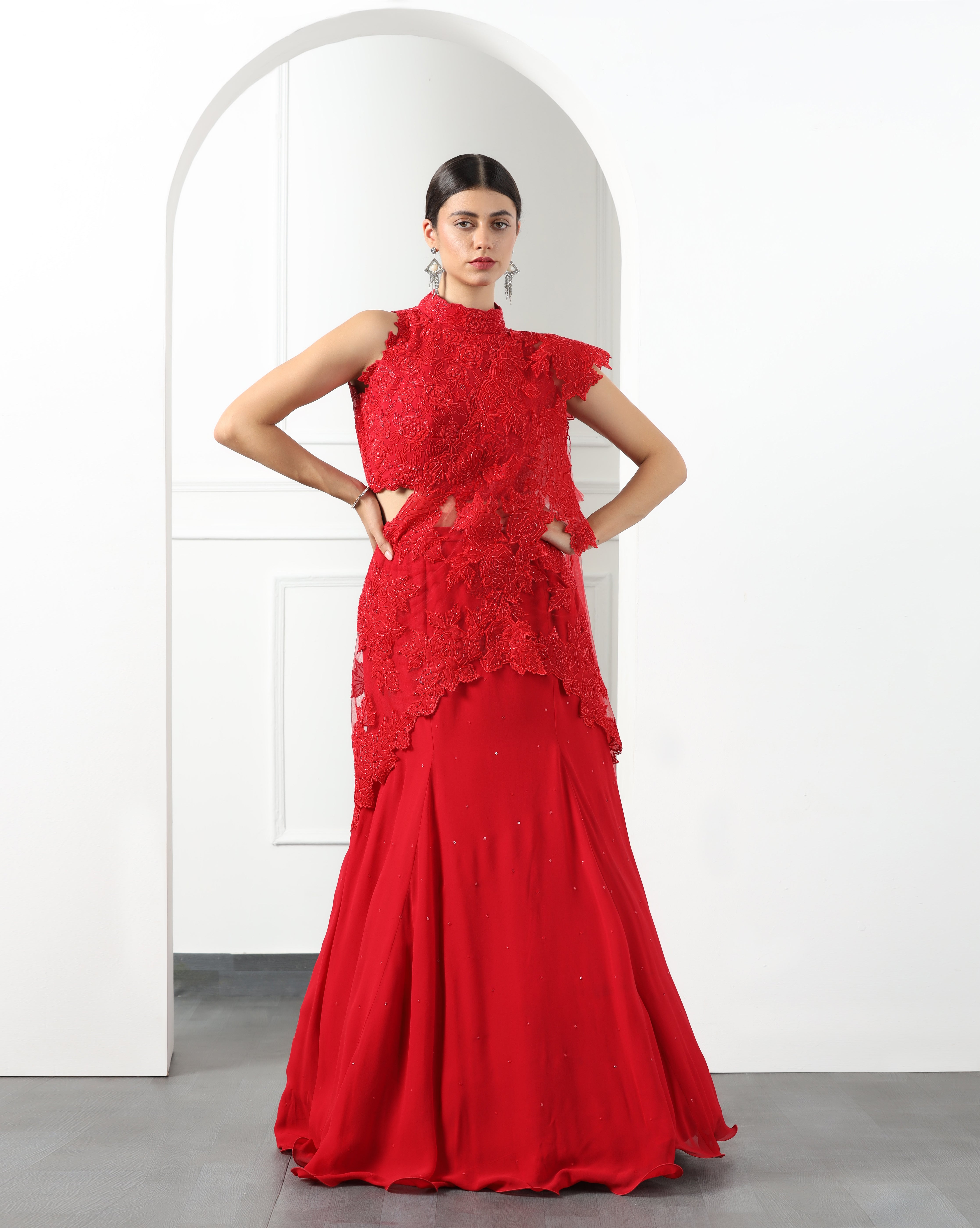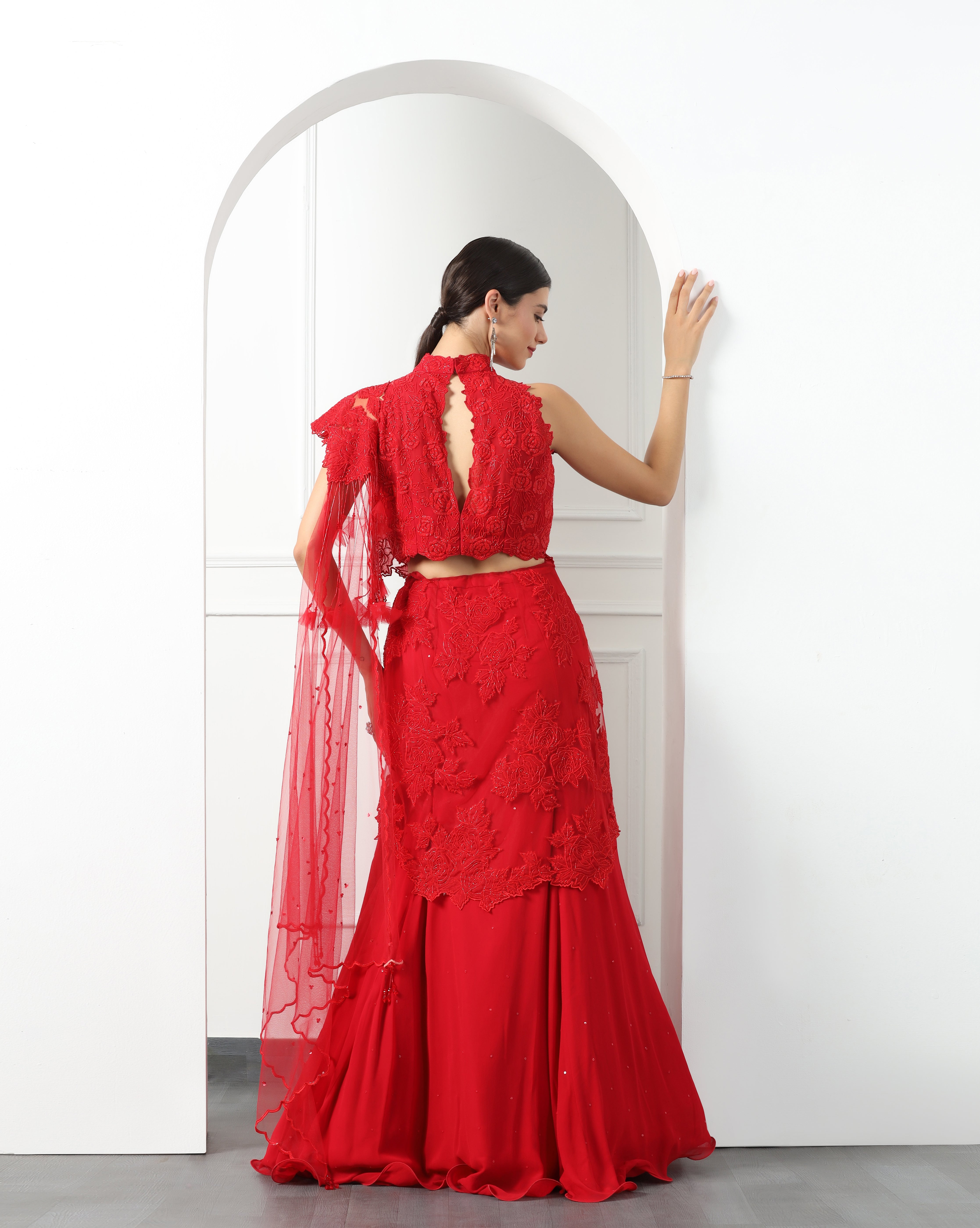 Scarlet Red Draped Lehenga