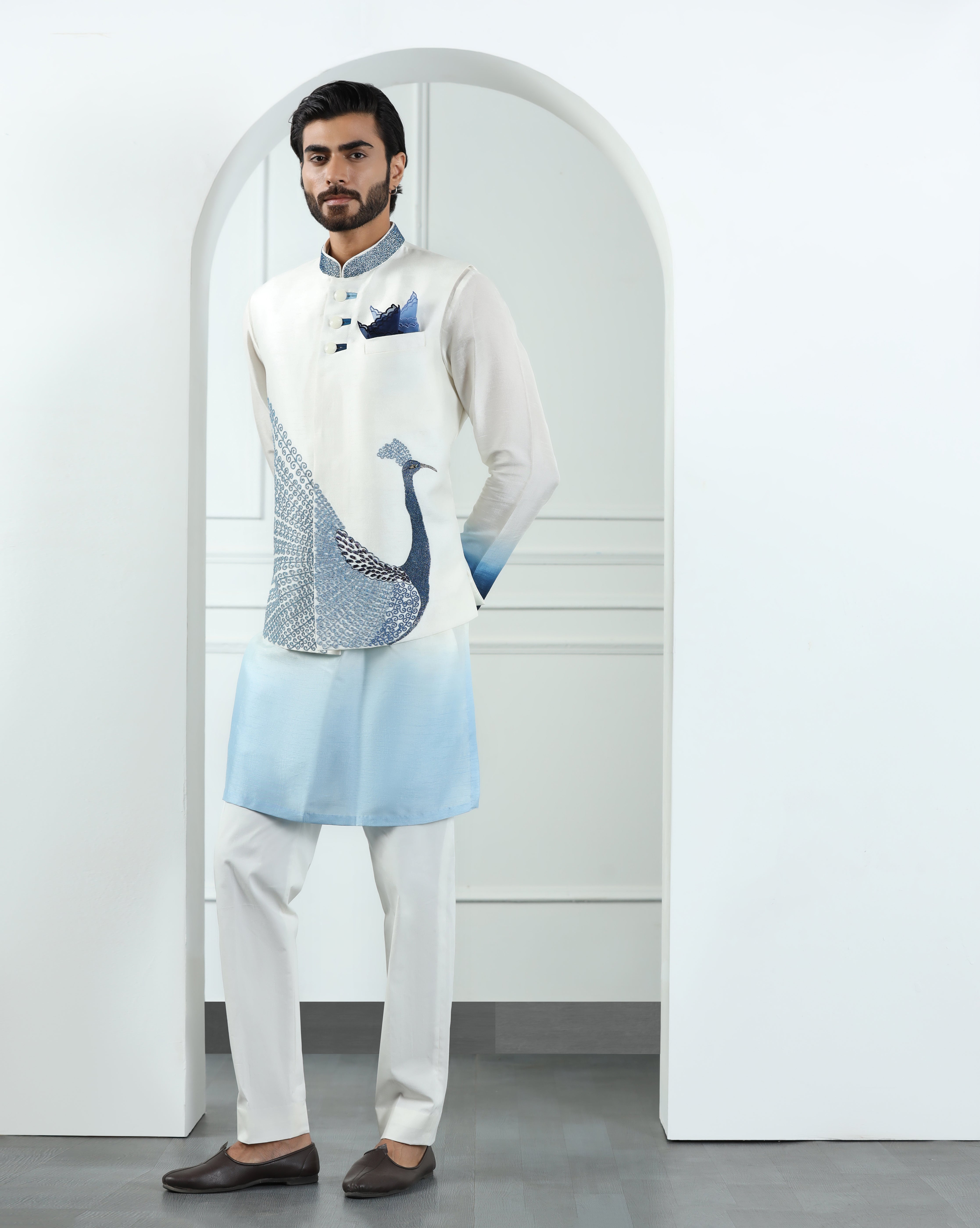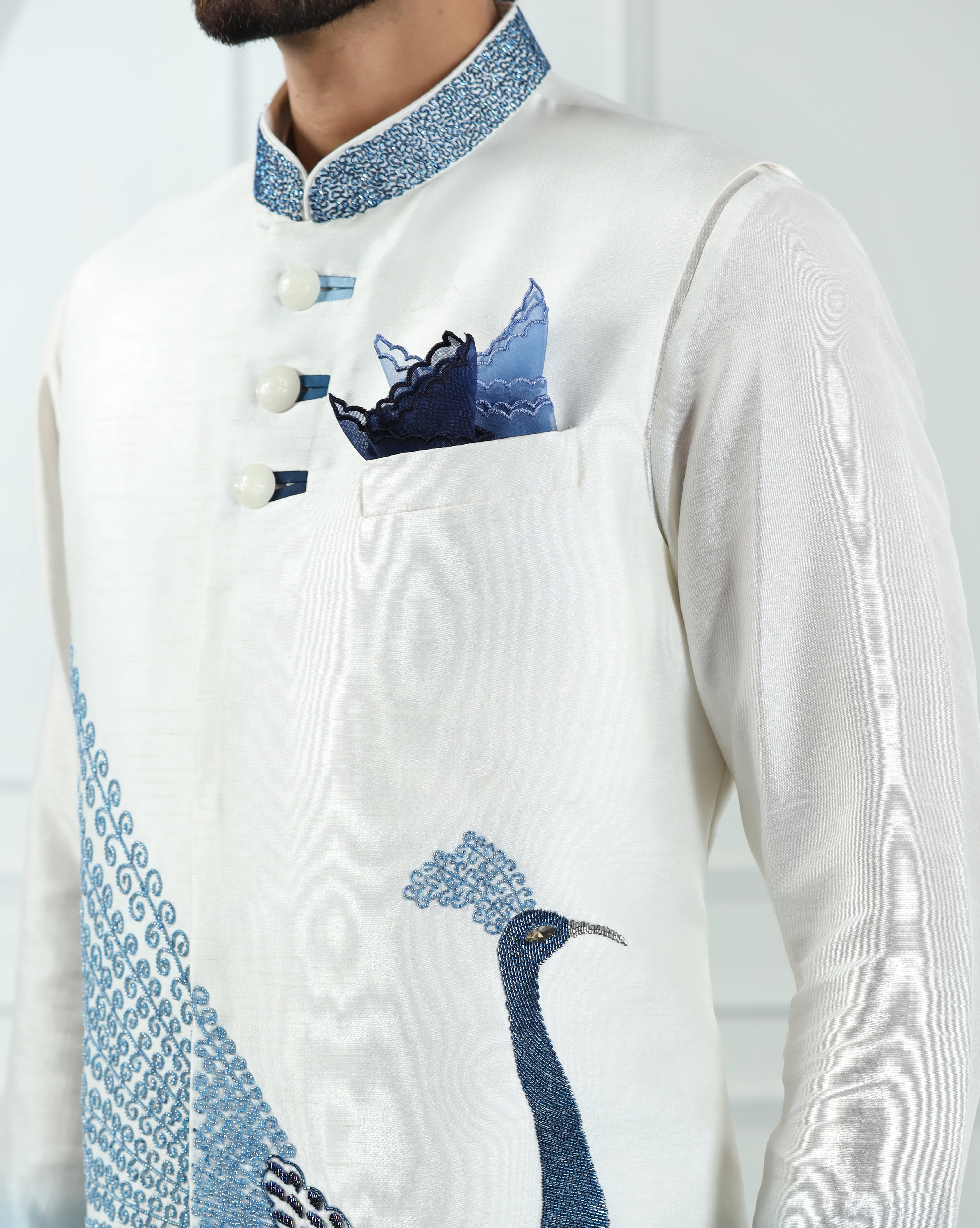 Peacock Ivory Nehru Jacket Set