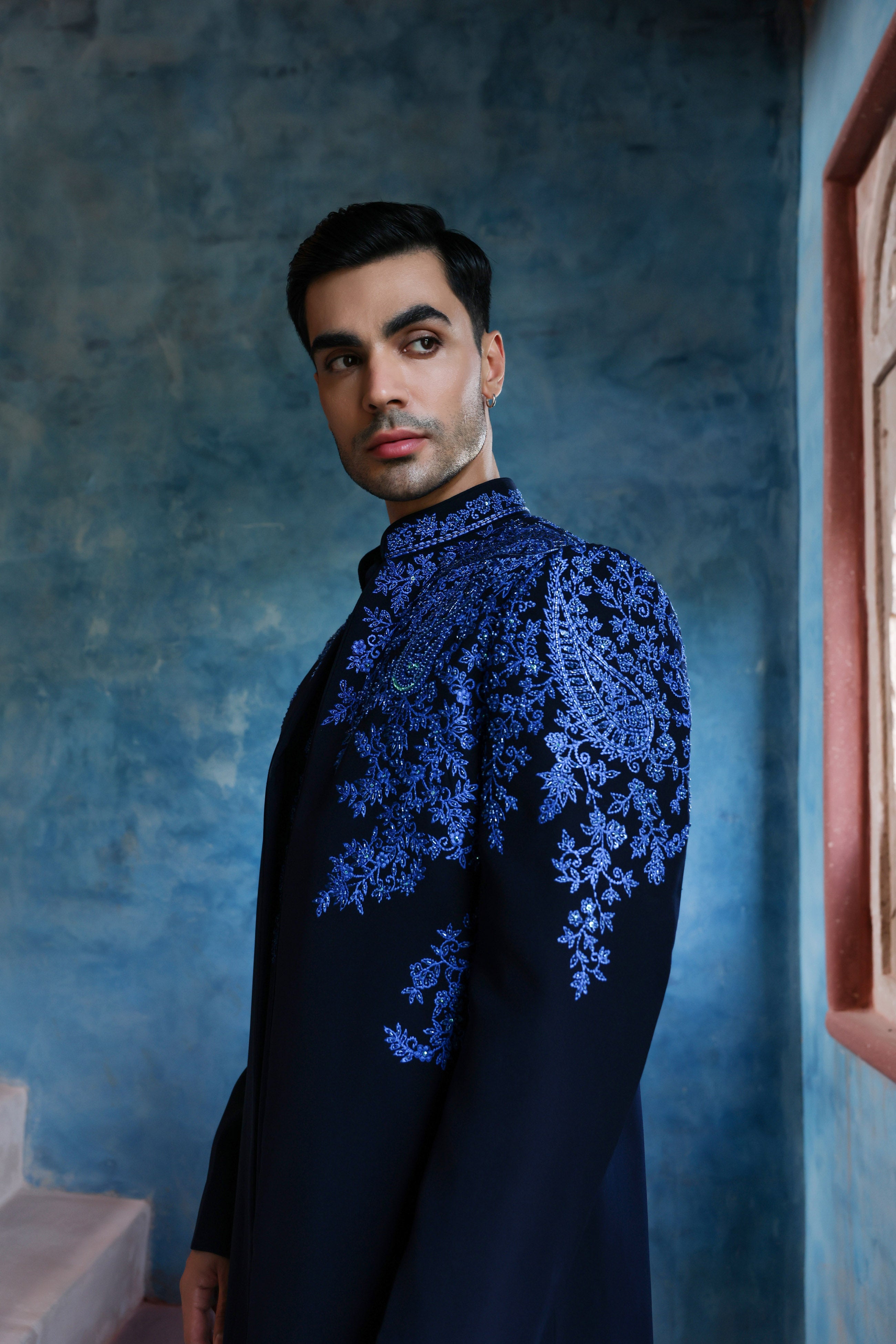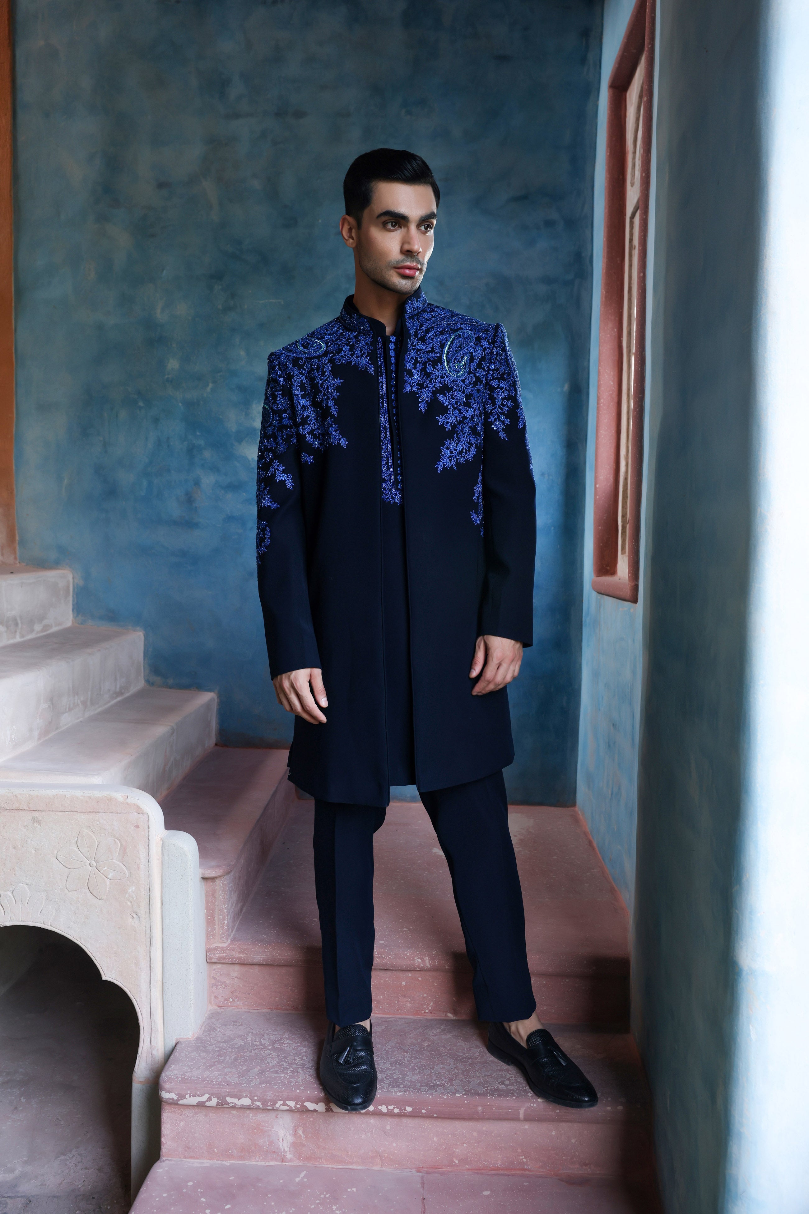 Midnight Blue Open Indowestern Set