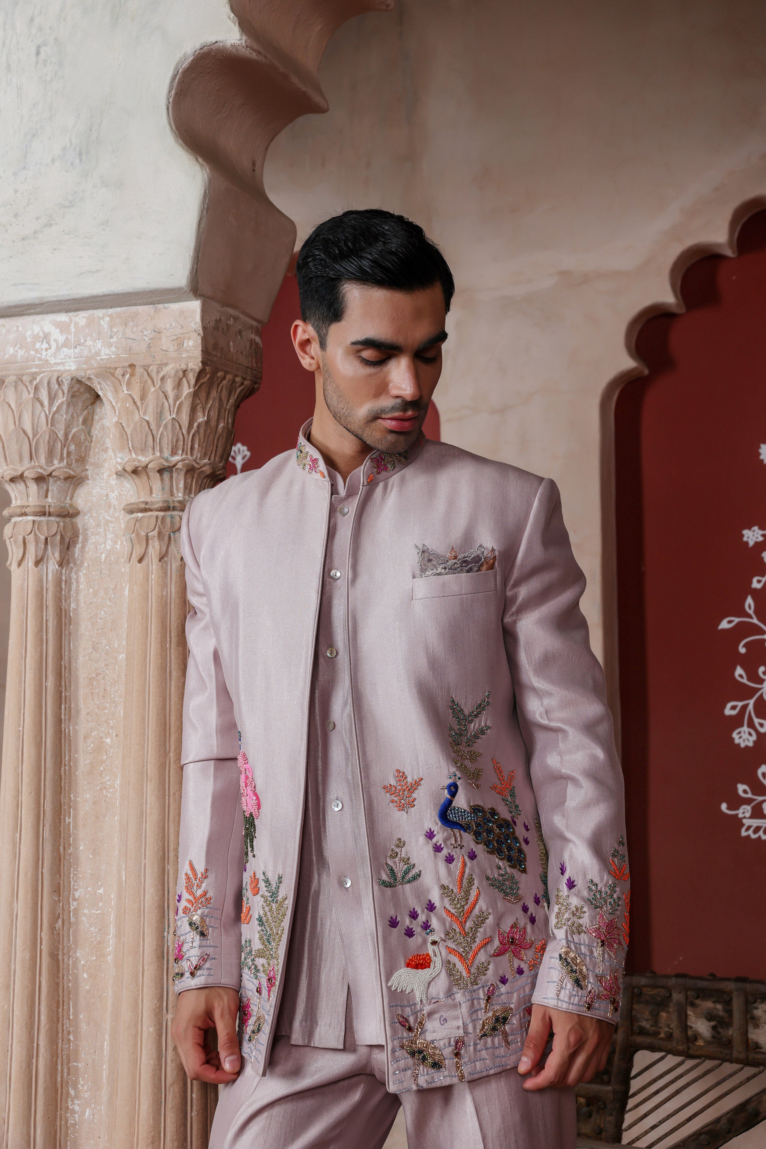 Soft Purple Open Indowestern Set