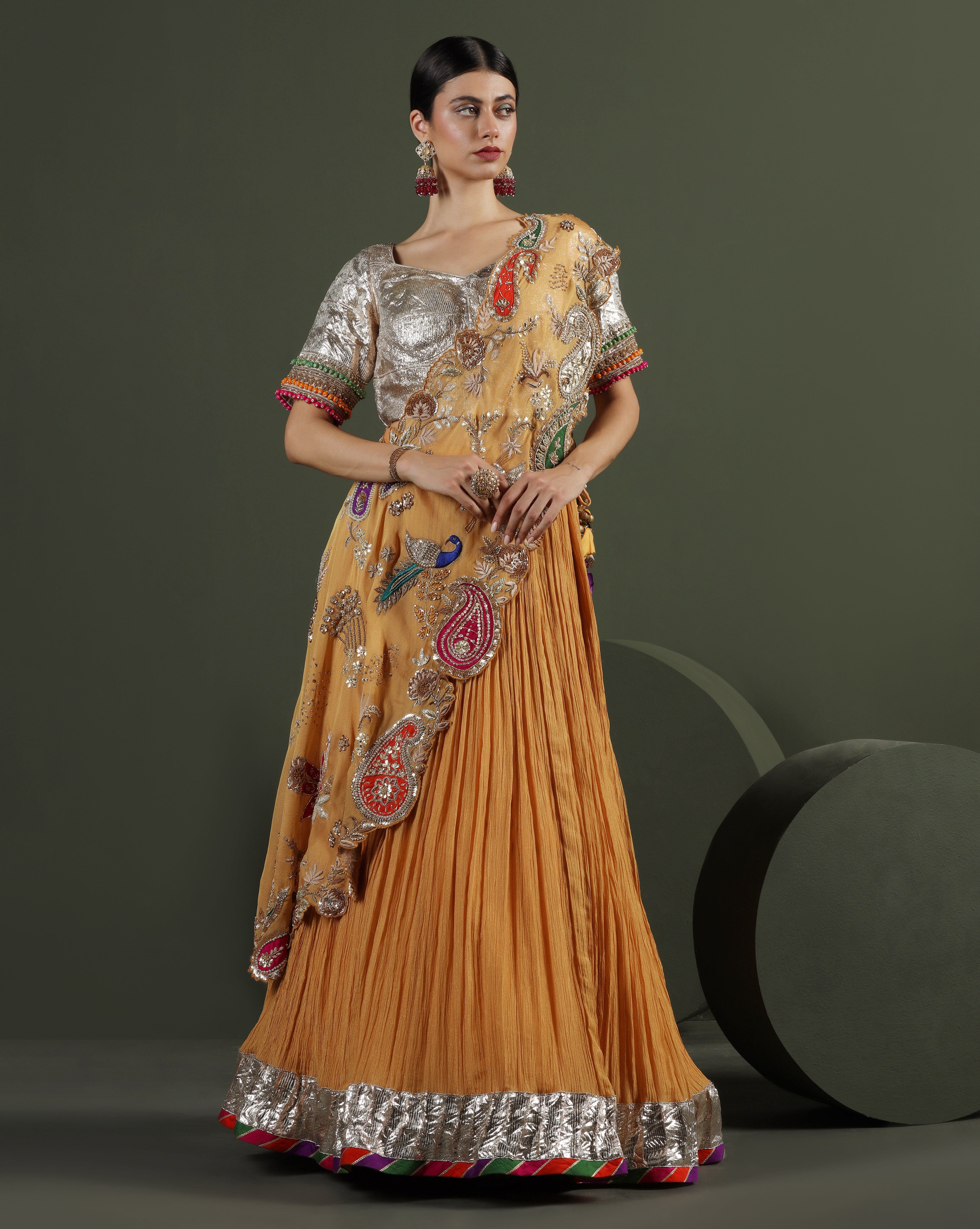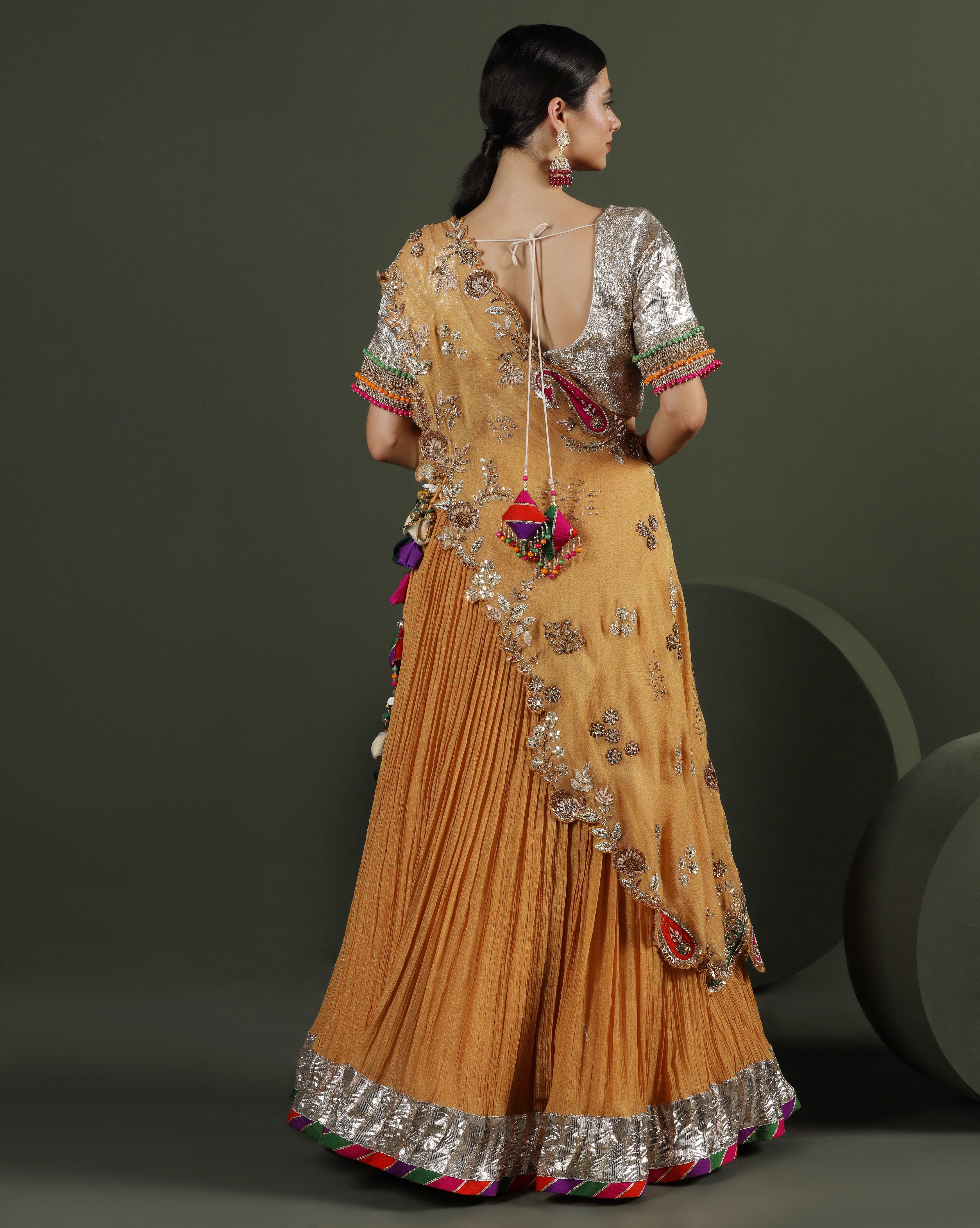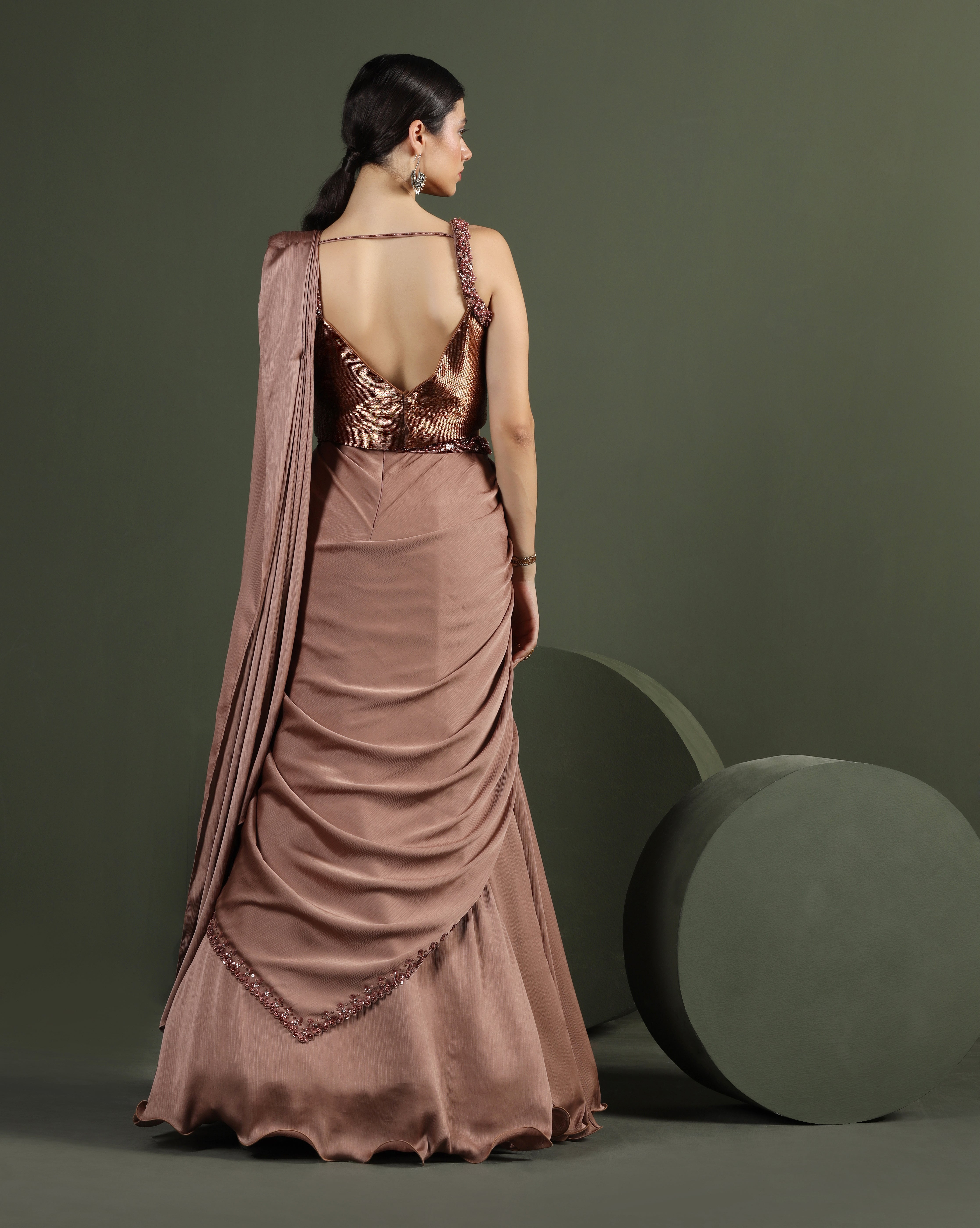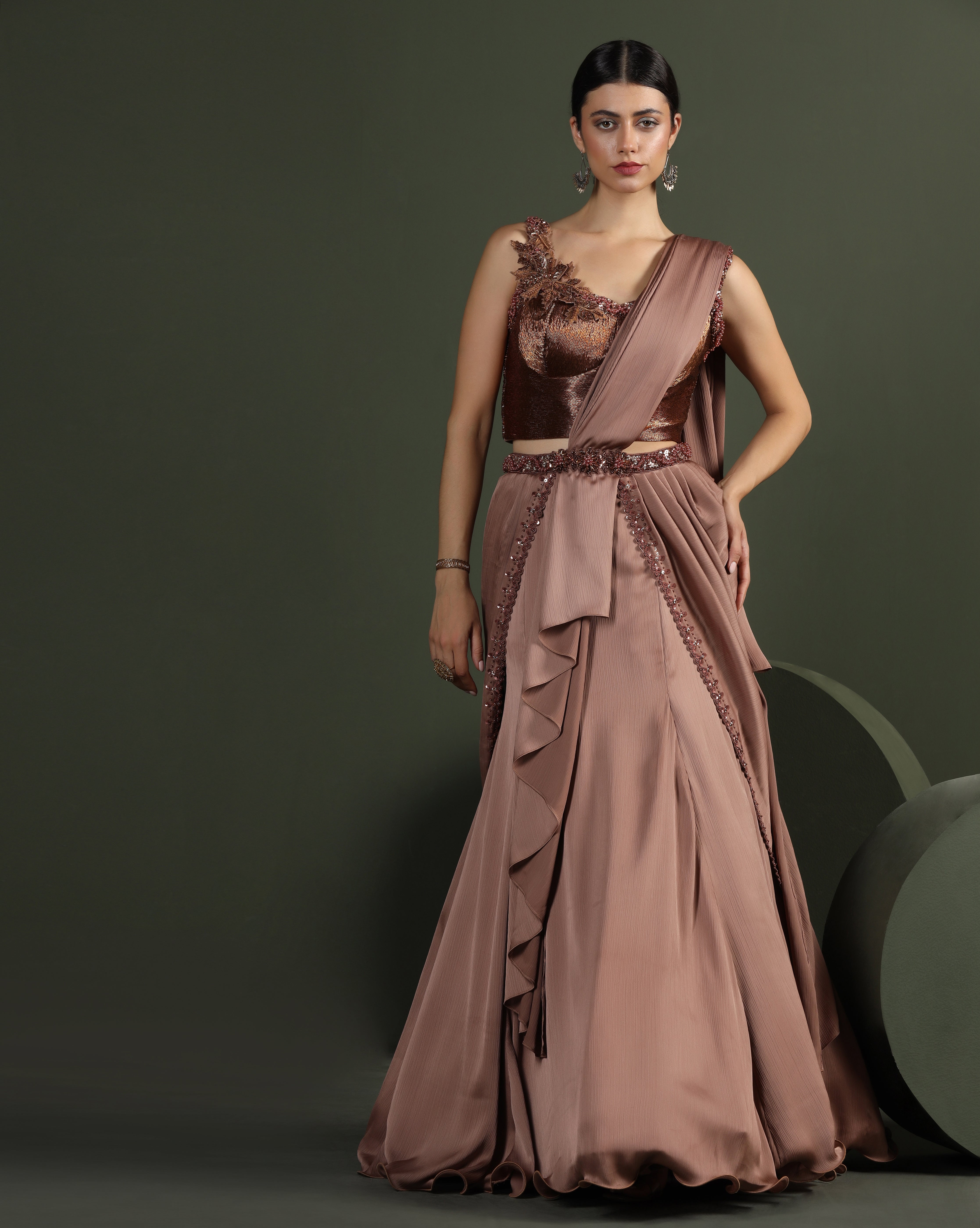 Metallic Copper Draped Lehenga