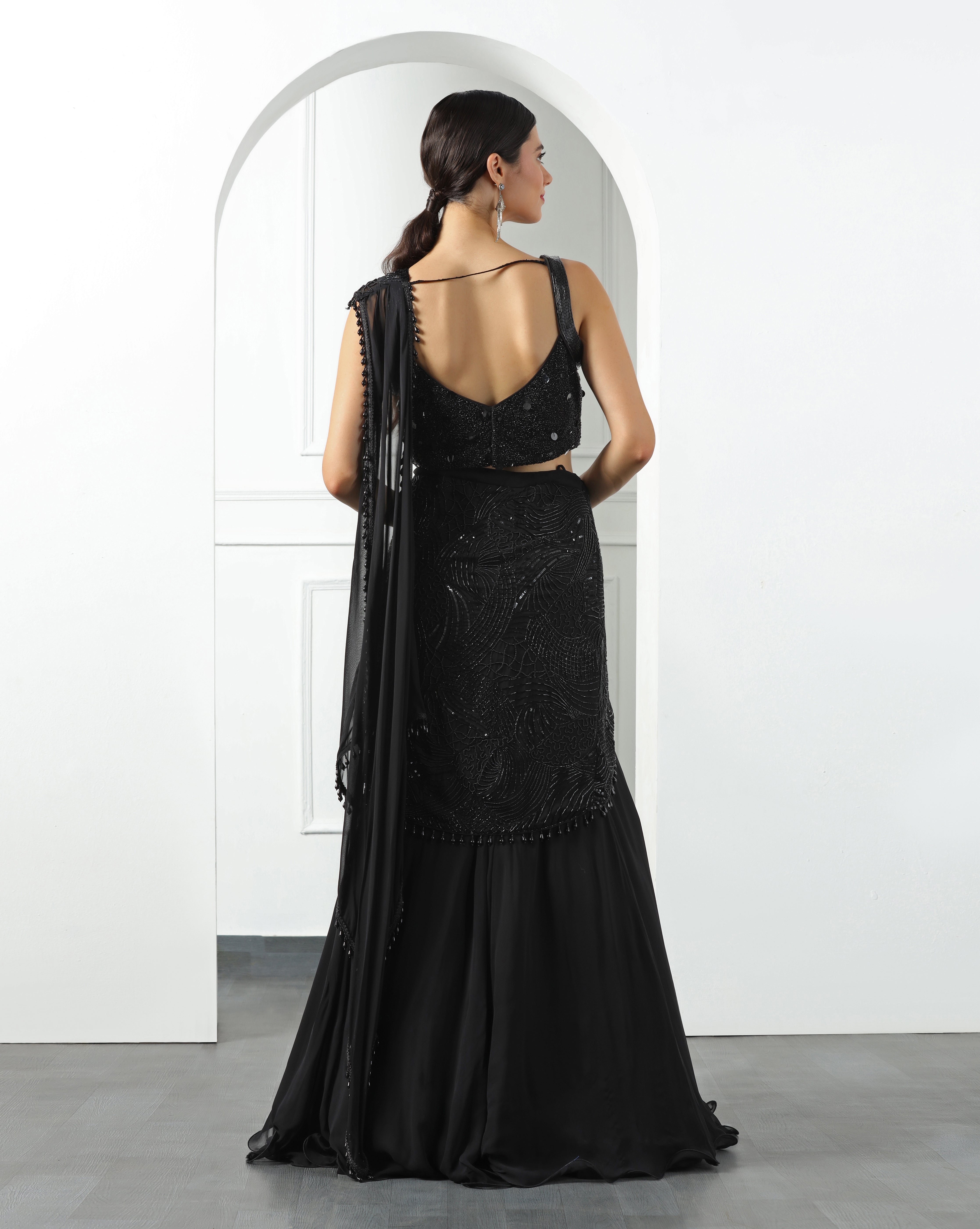 Midnight Black Draped Lehenga