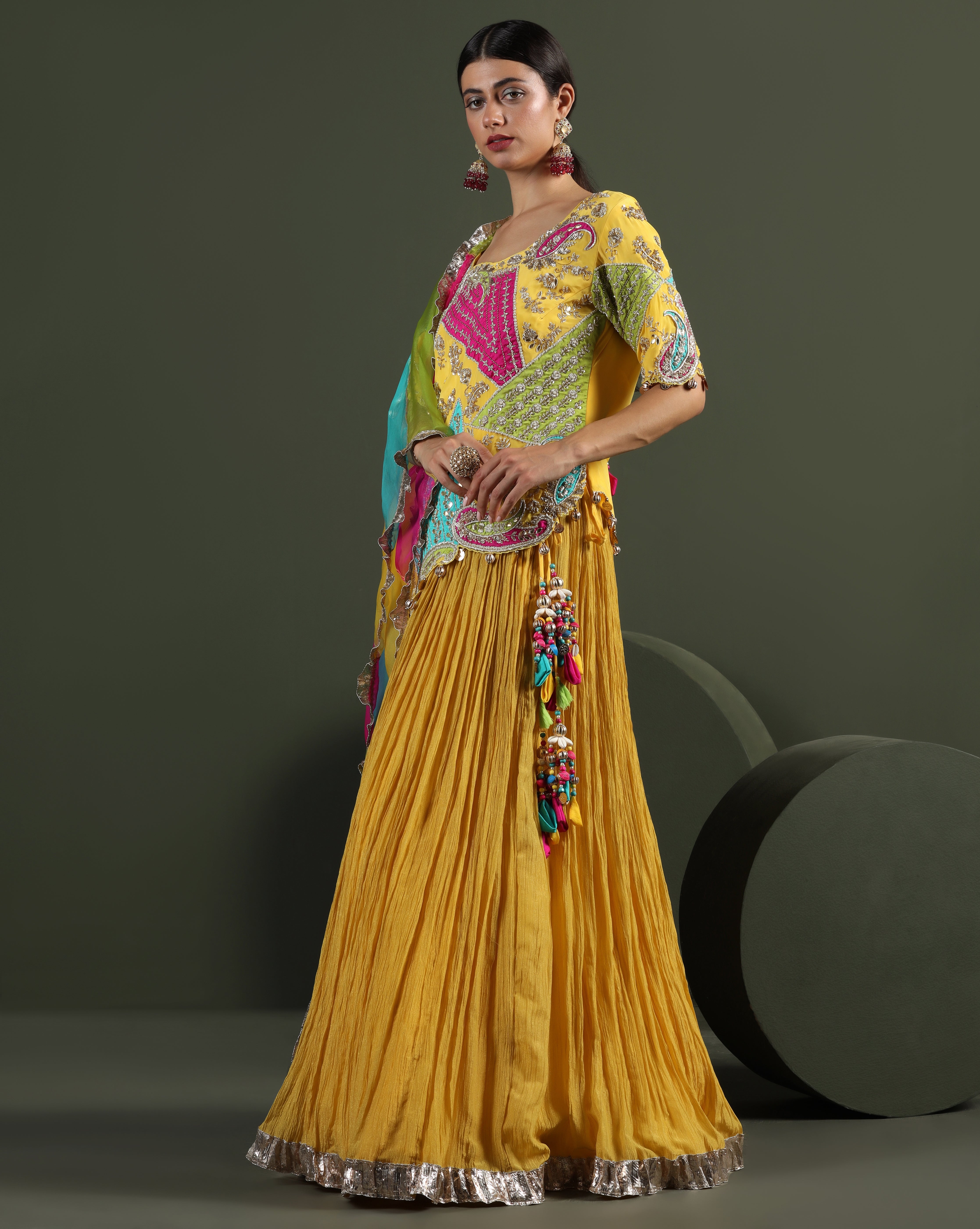 Honey Yellow Draped Lehenga