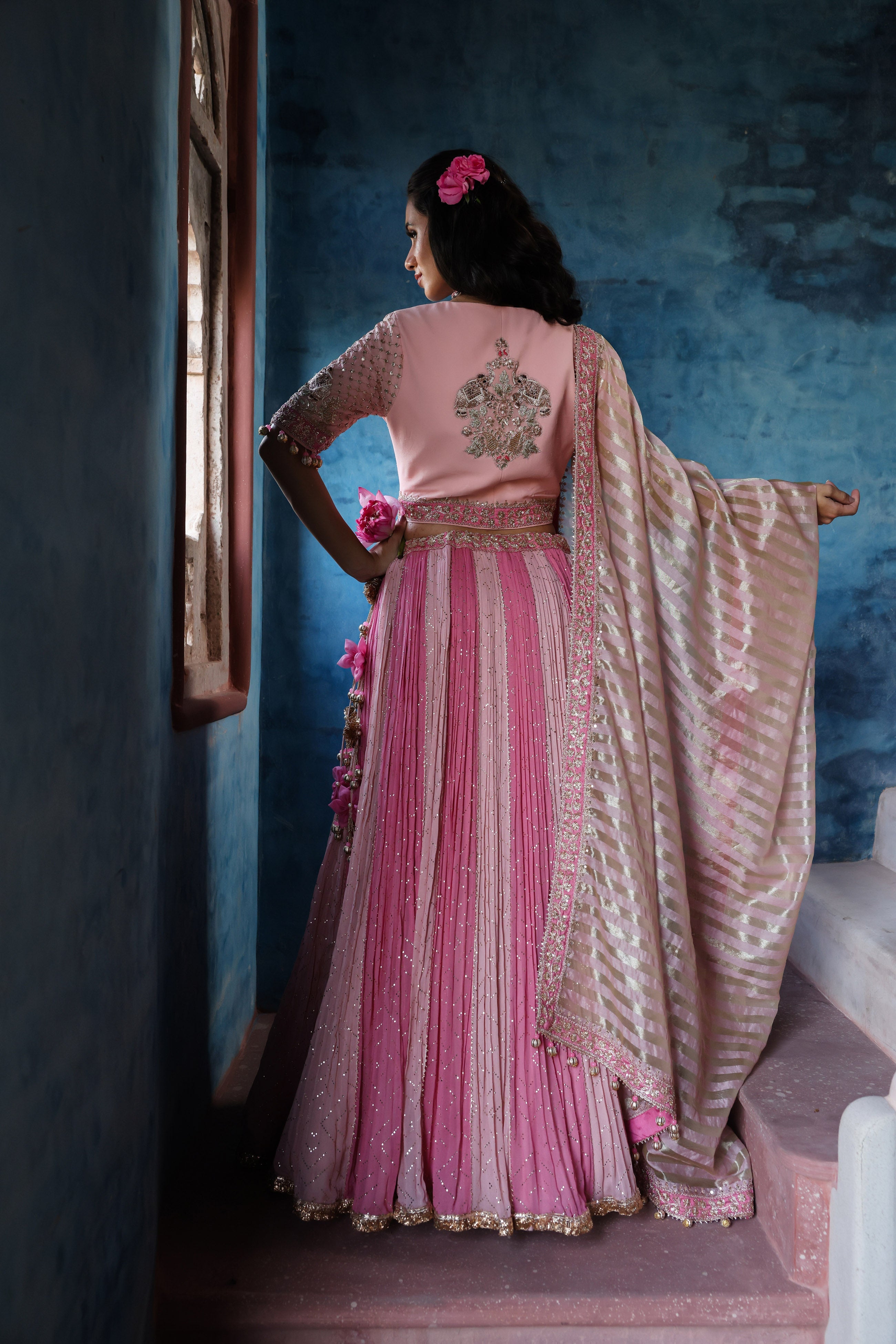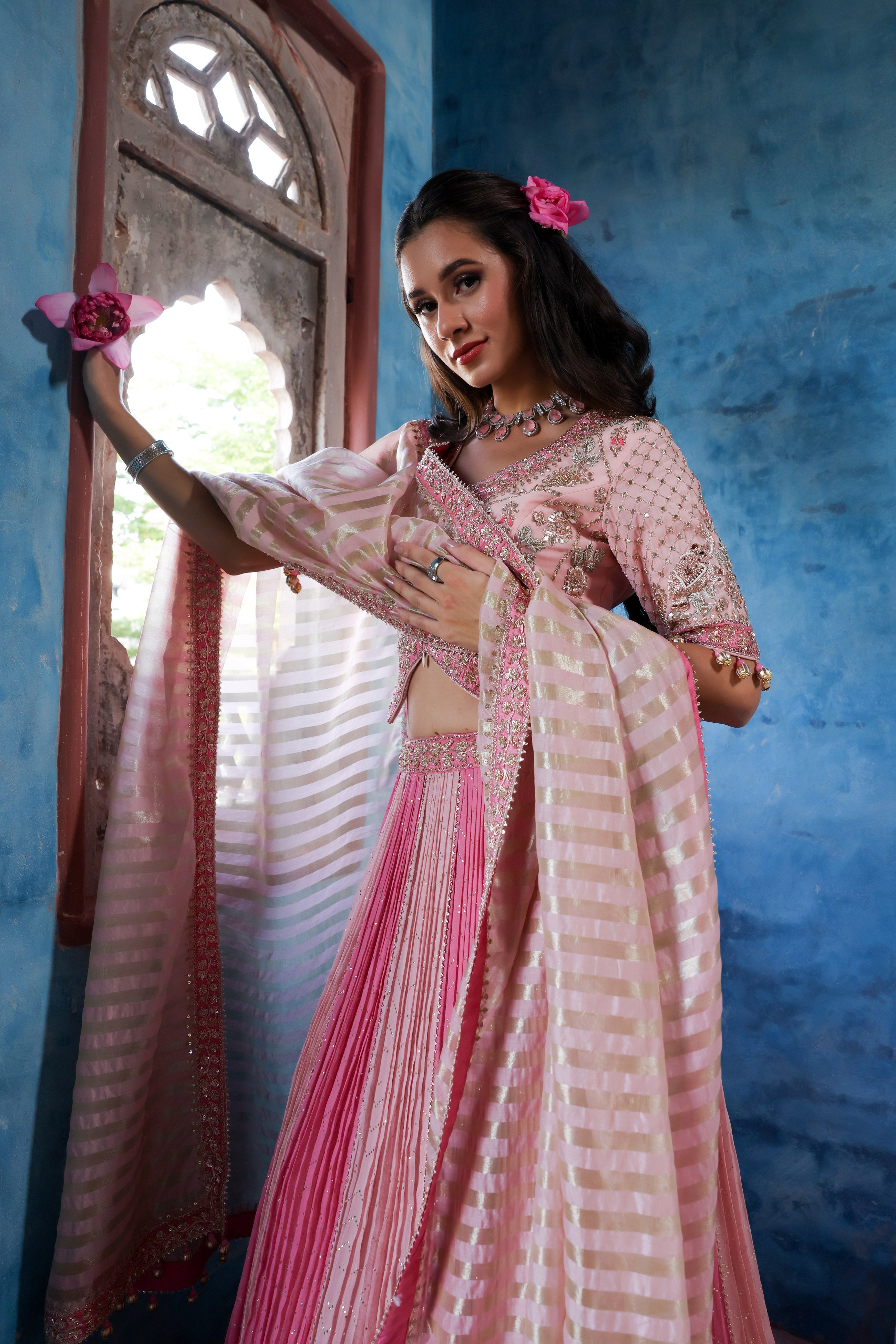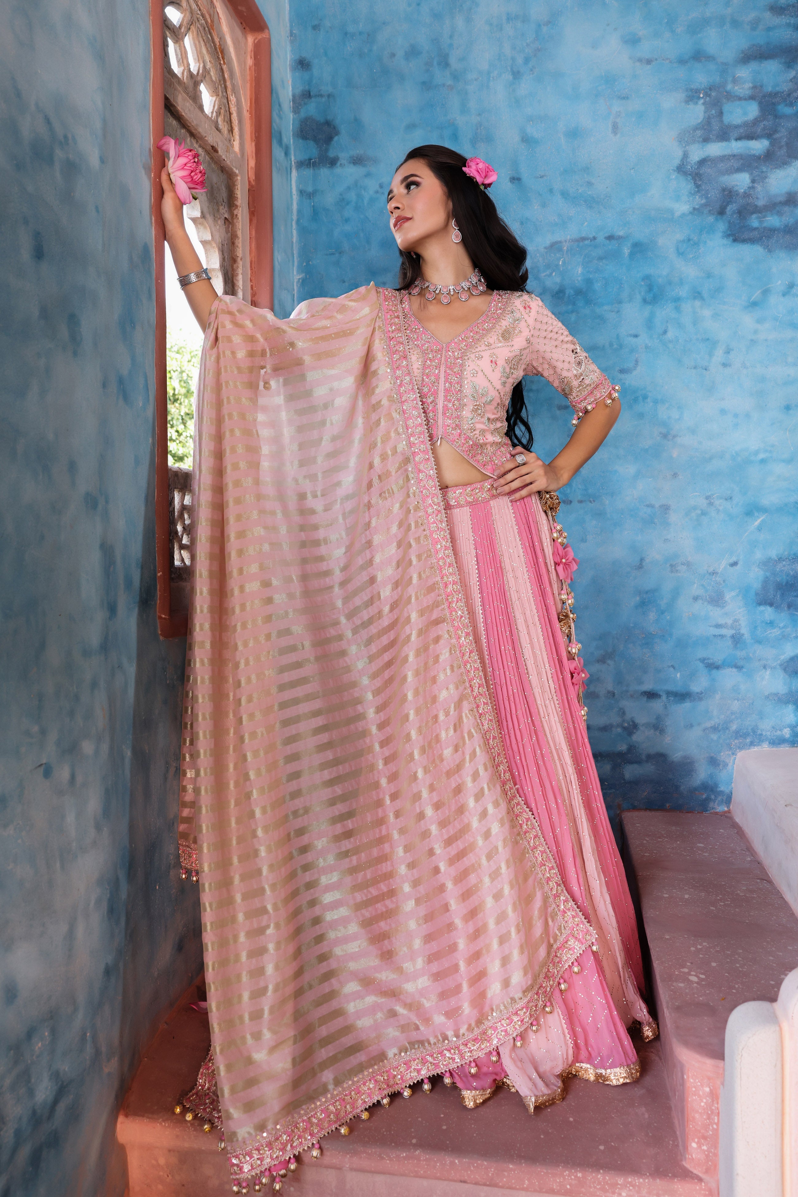 French Pink Embroidered Lehenga