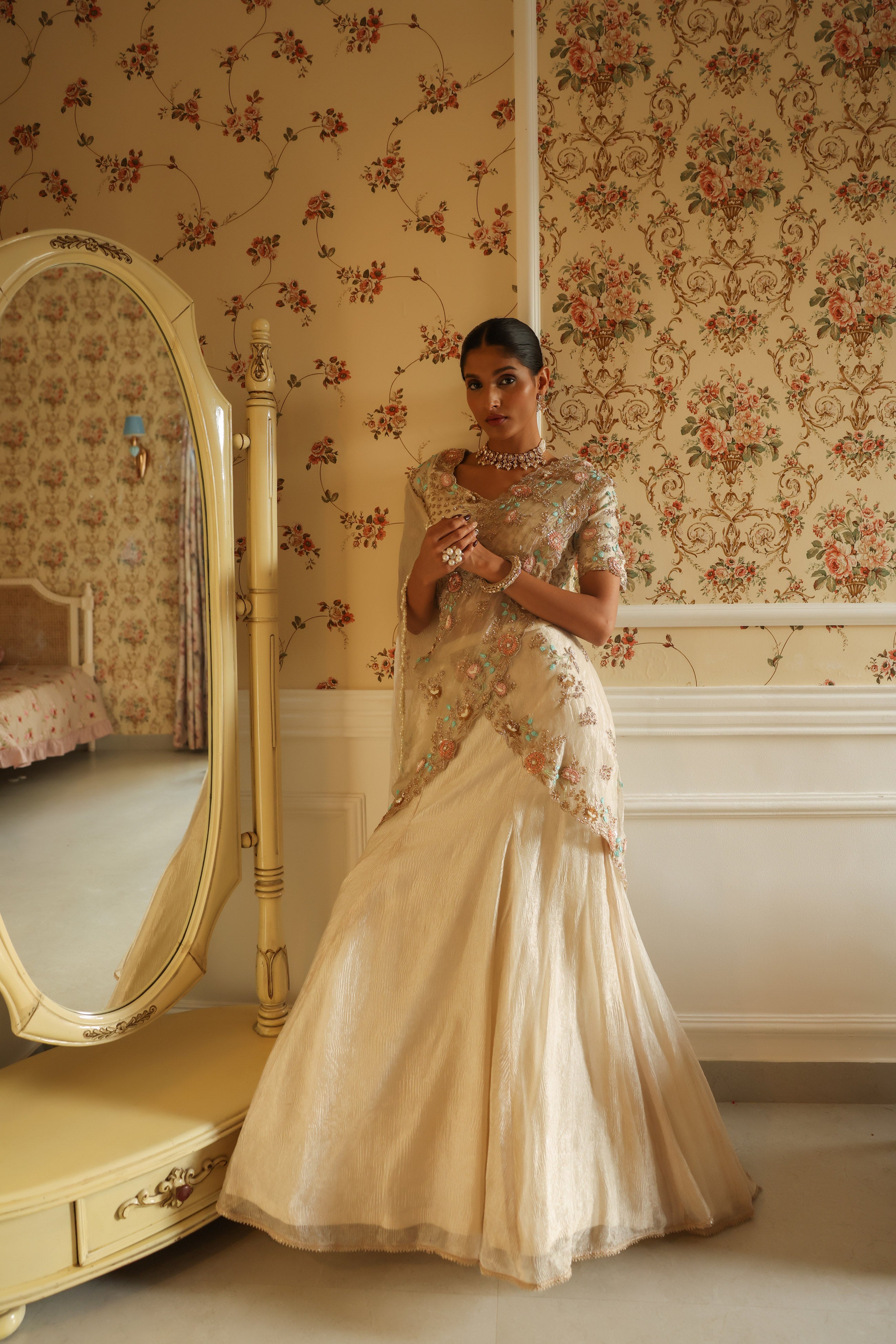 Powder White Draped Lehenga