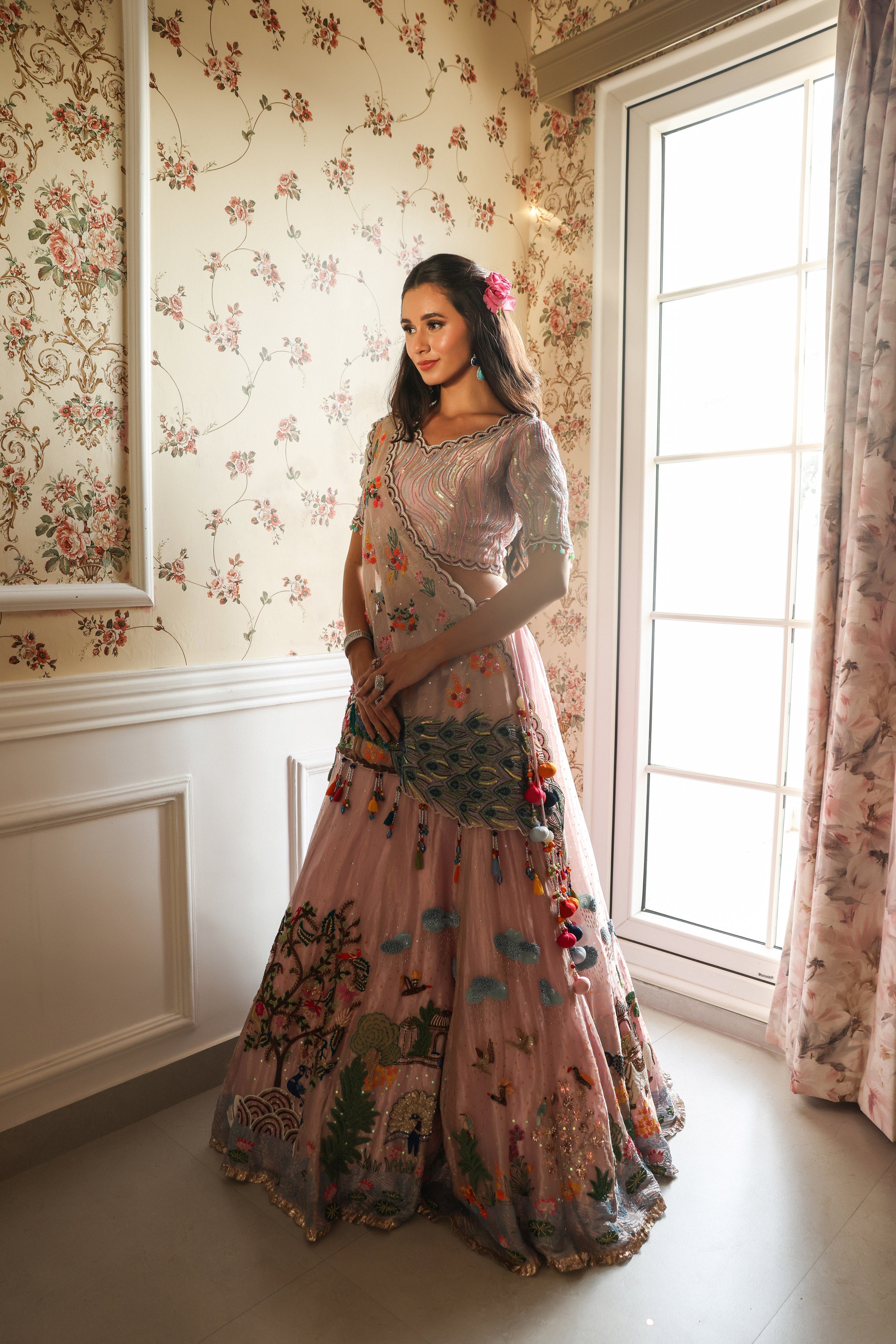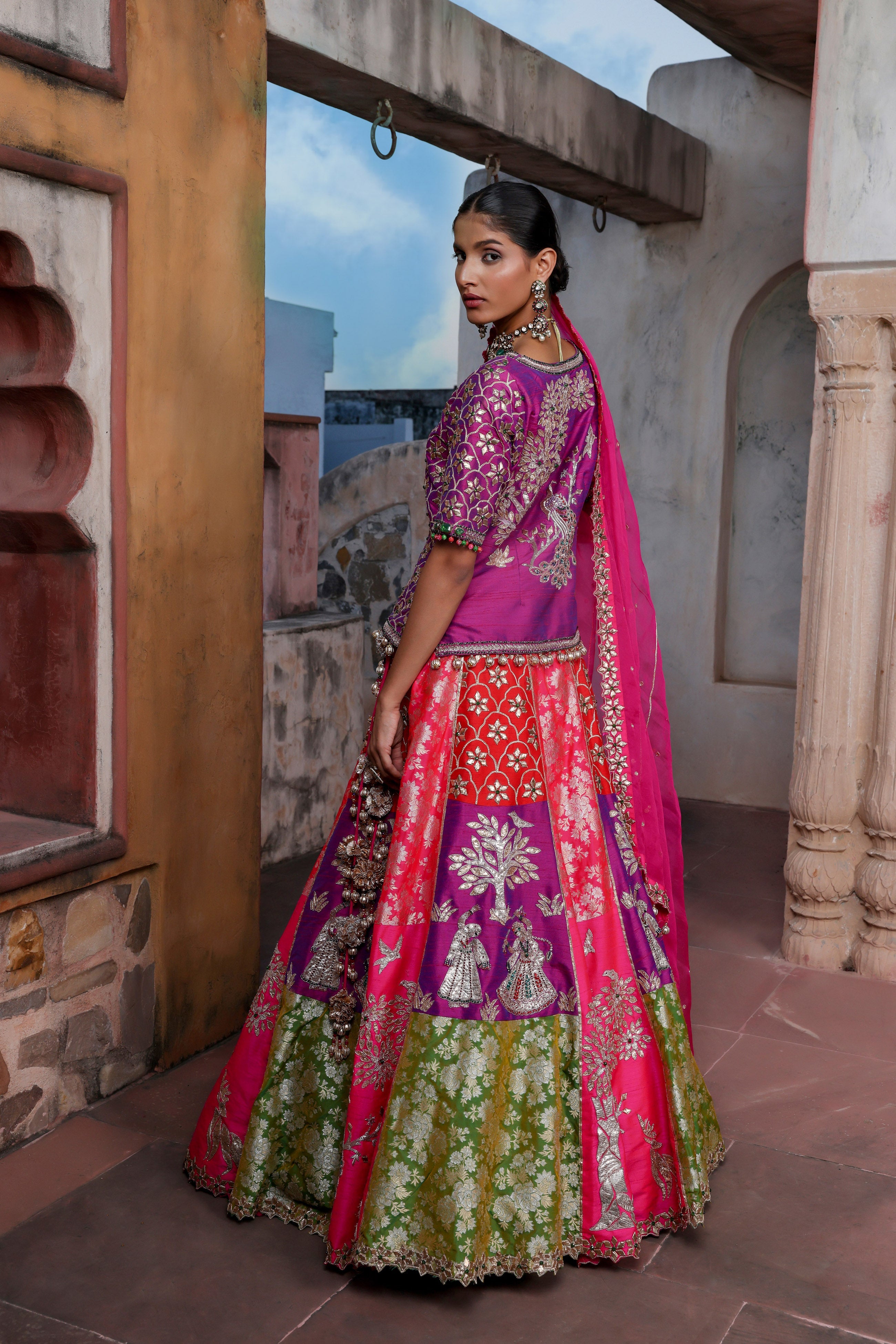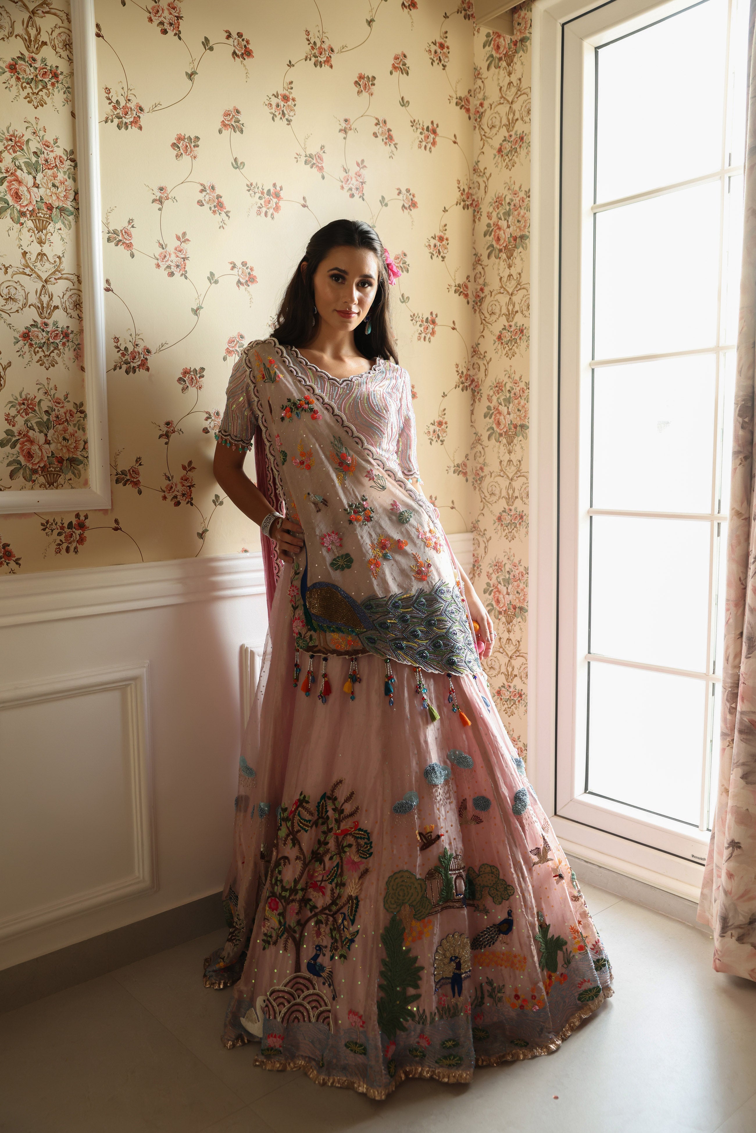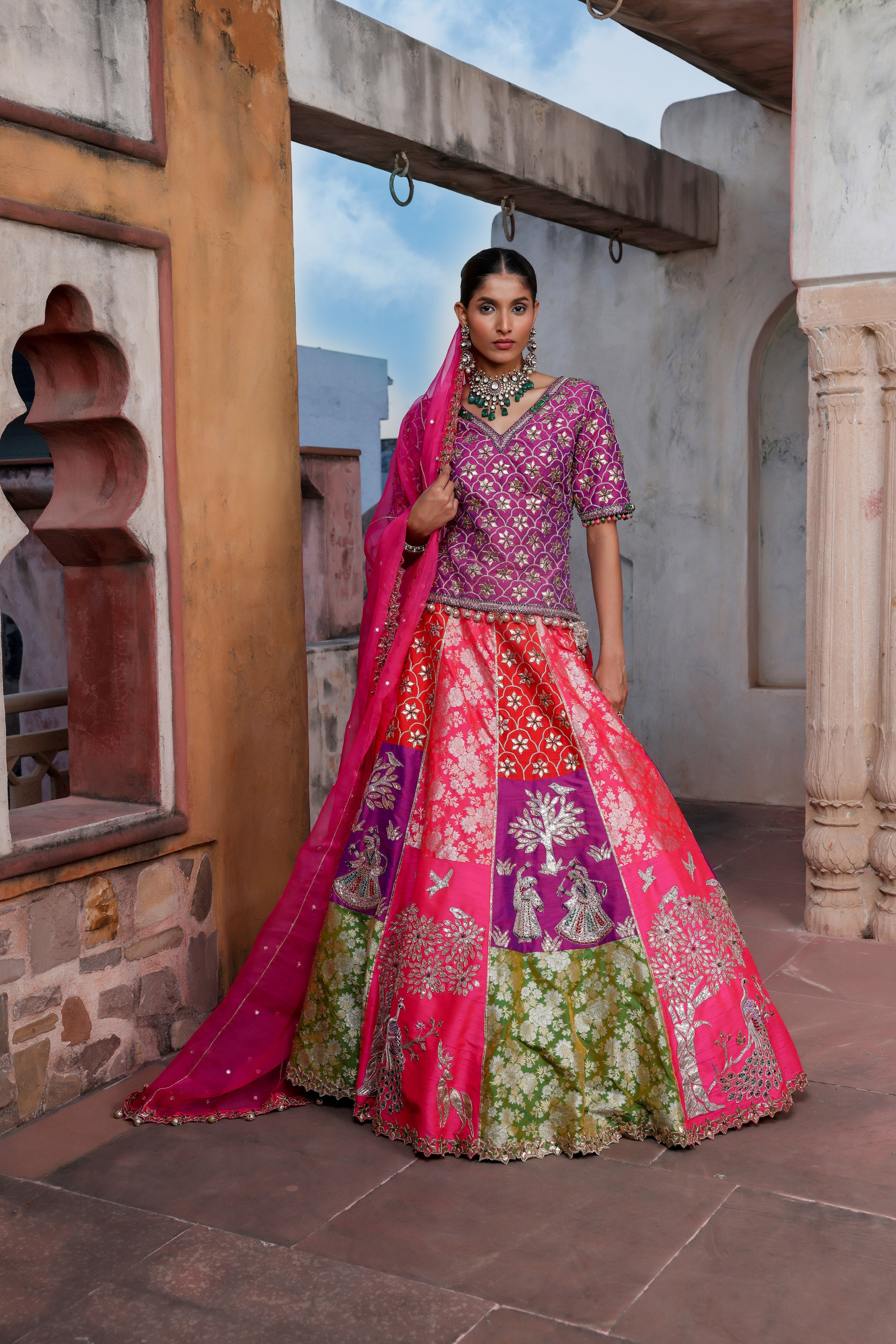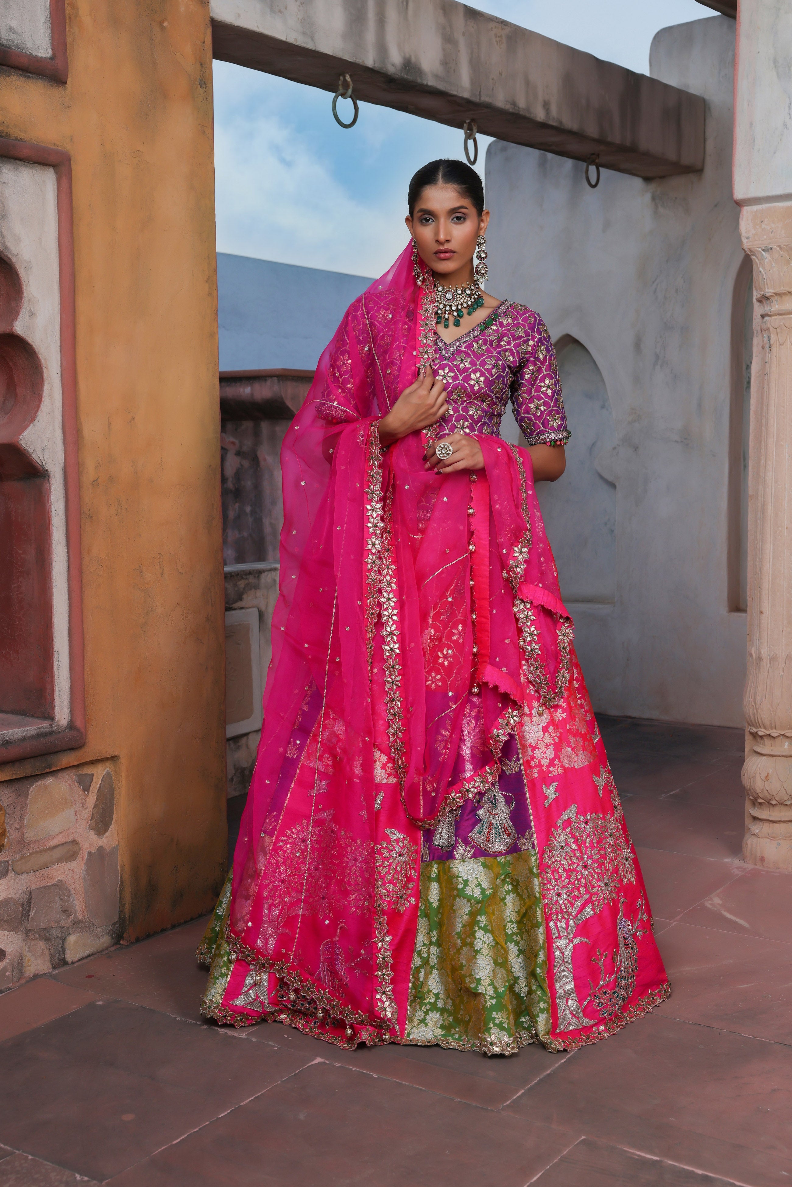 Peacock Pink Embroidered Lehenga