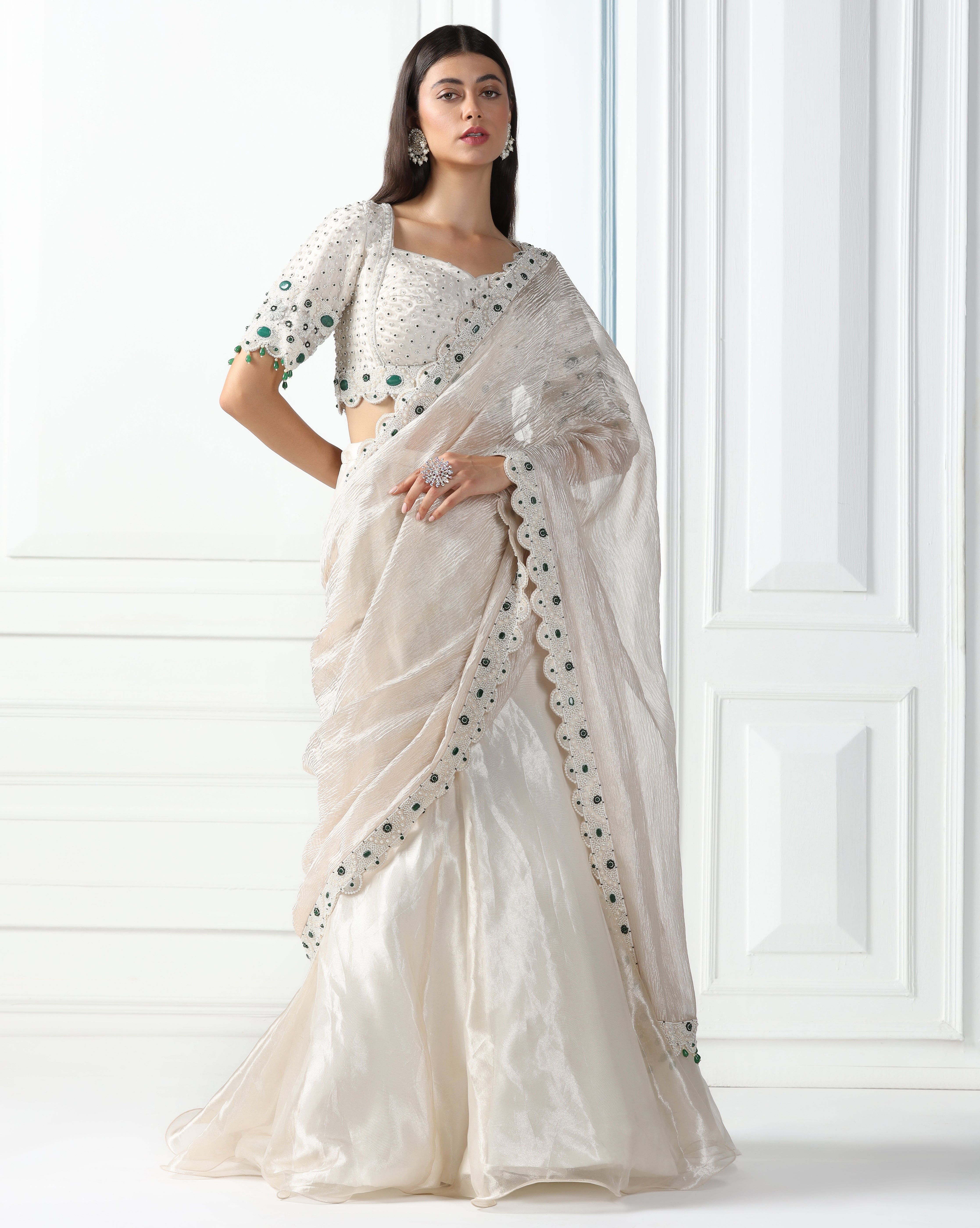 Honeydew Ivory Draped Lehenga