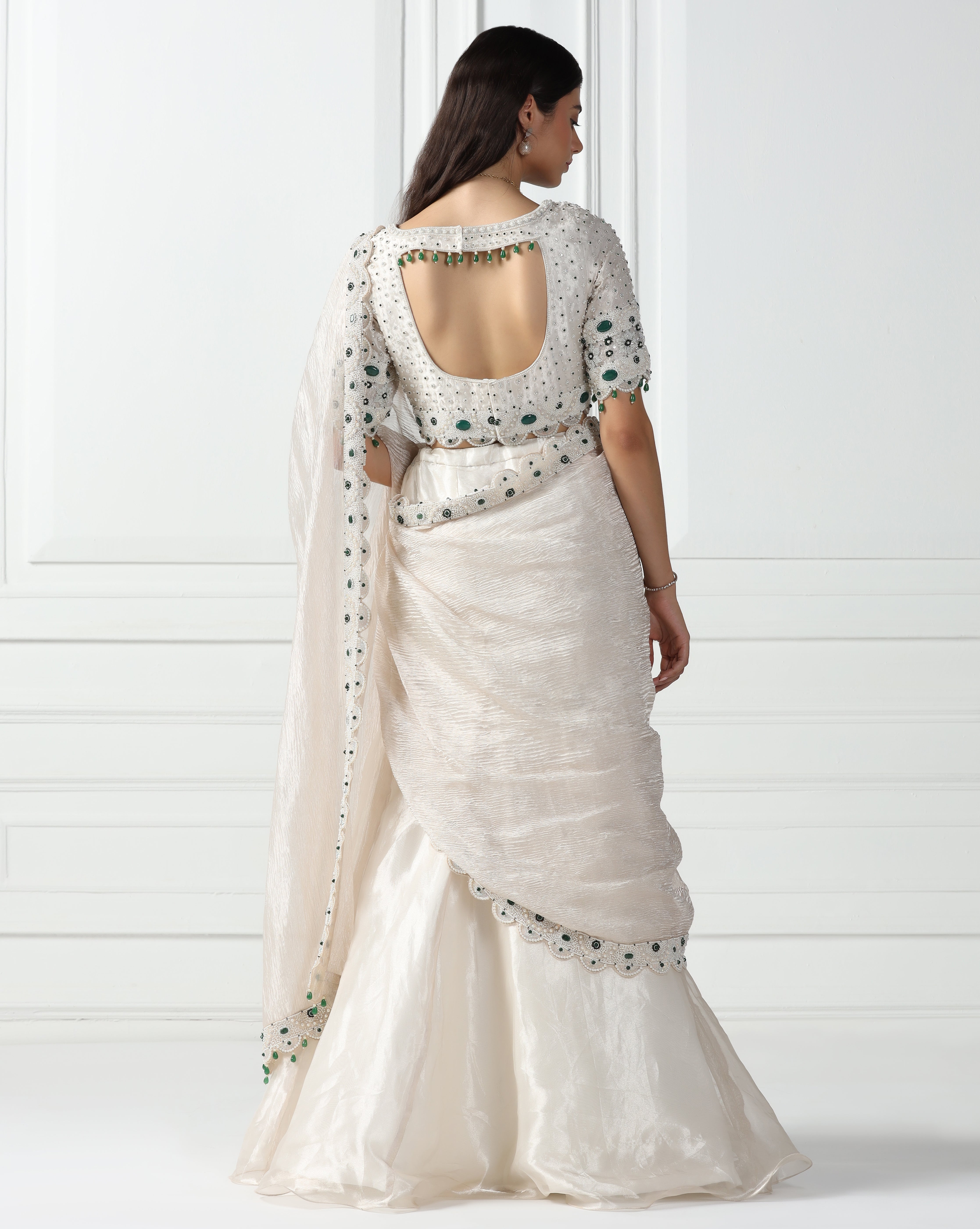 Powder White Draped Lehenga